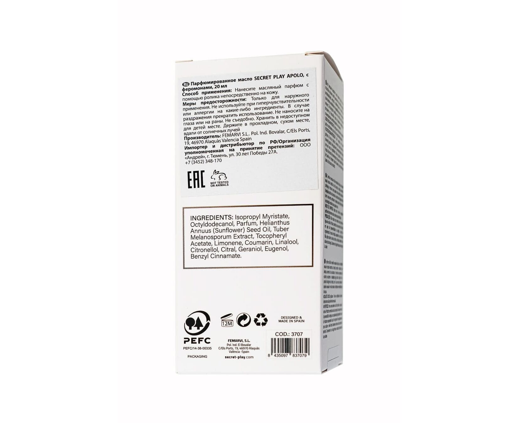 Парфюмированное масло Apolo от Secret Play — это мощное олицетворение мужской привлекательности и уверенности. Этот аромат, насыщенный естественным очарованием трюфеля, раскрывает ваше сексуальное притяжение и превращает вас в объект внимания, о котором невозможно забыть. Трюфель — один из самых сильных природных афродизиаков, и его биологические компоненты в составе аромата стимулируют сексуальное желание естественным образом, создавая непреодолимую ауру соблазна вокруг вас.