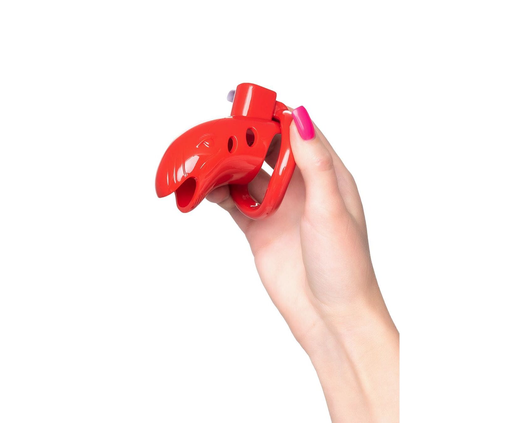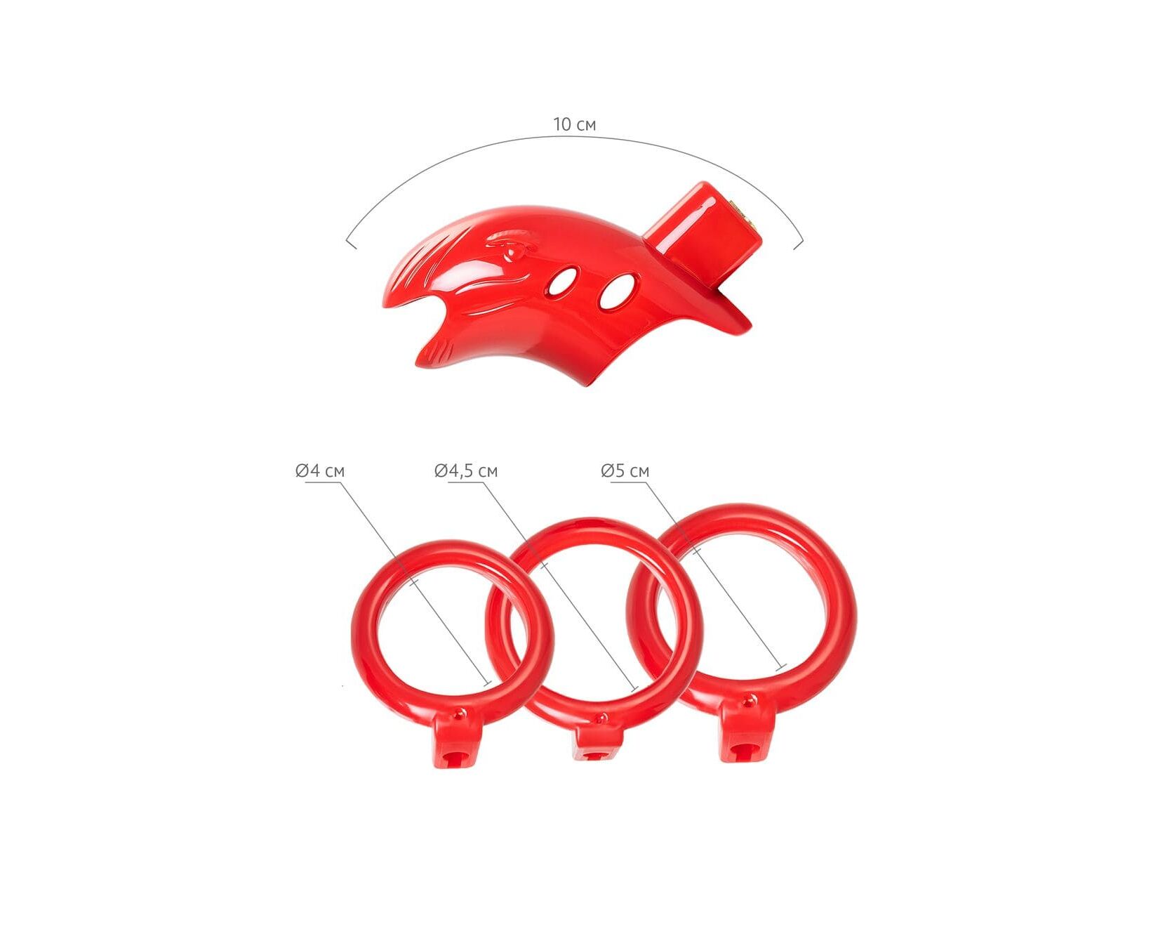 Отверстие на конце делает возможным мочеиспускание, поэтому пояс подходит для длительного ношения. В комплекте три пластиковых кольца разного диаметра, подходящих для разных размеров пенисов и вариантов ношения.