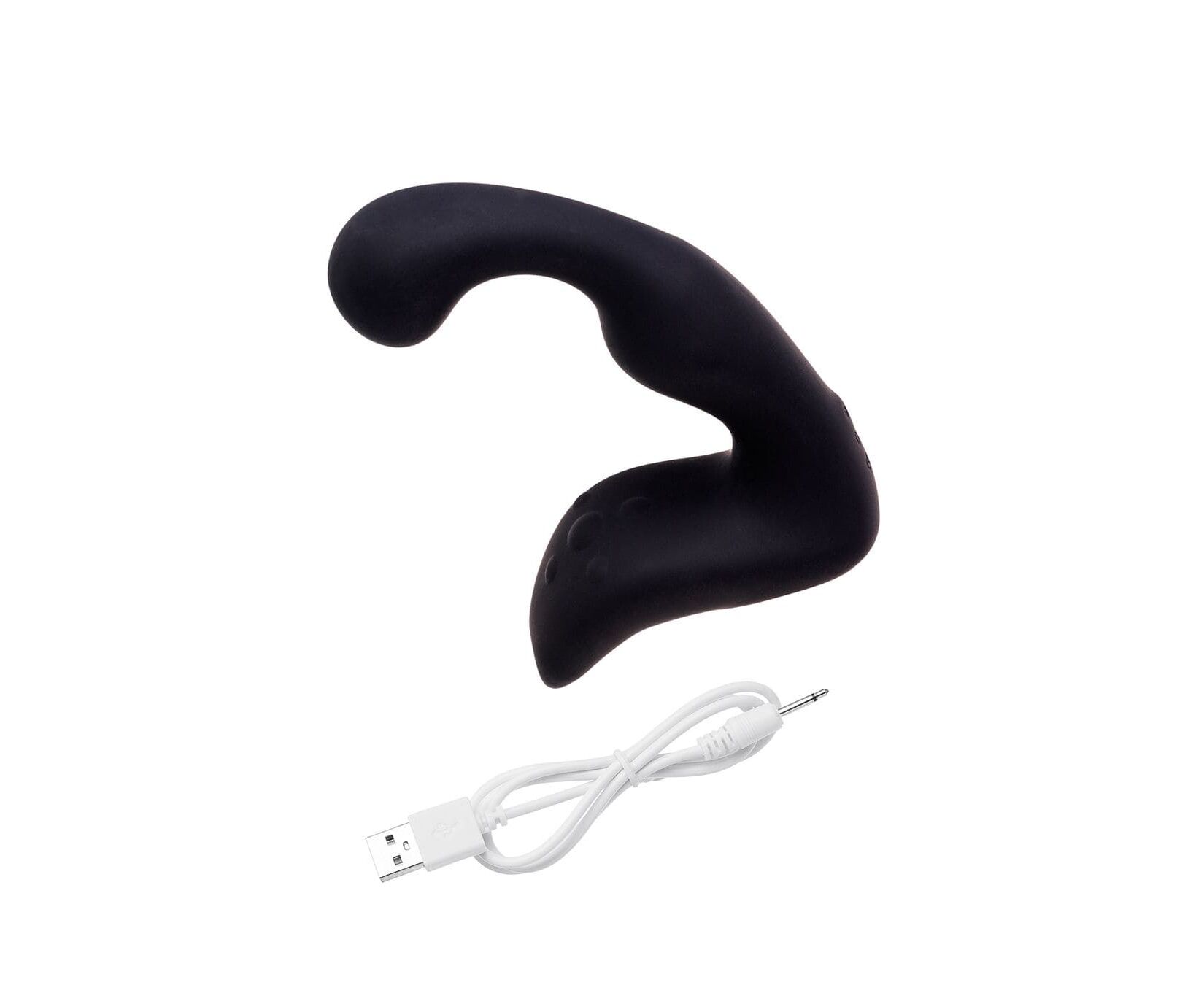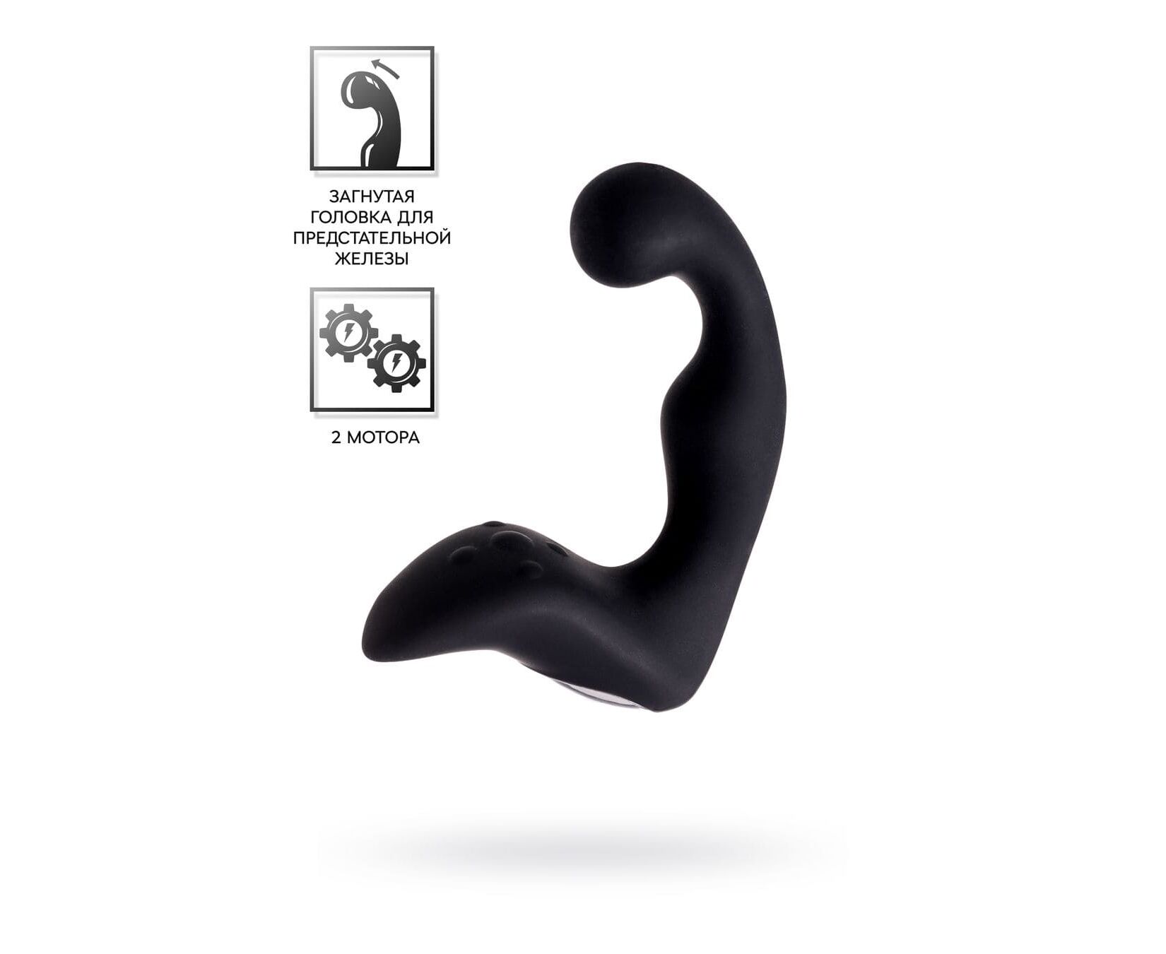 Одна часть игрушки — рельефный стимулятор с загнутой головкой — активно массирует предстательную железу.