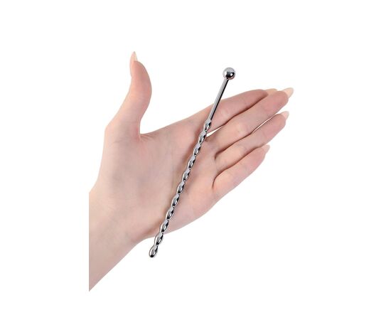 Уретральный плаг в форме косички. Небольшие звенья плавно меняют диаметр. Прекрасный вариант для исследования чувствительности своего организма: шарик на конце и удлиненное расстояние до фигурной части добавляют удобства при стимуляции уретры.