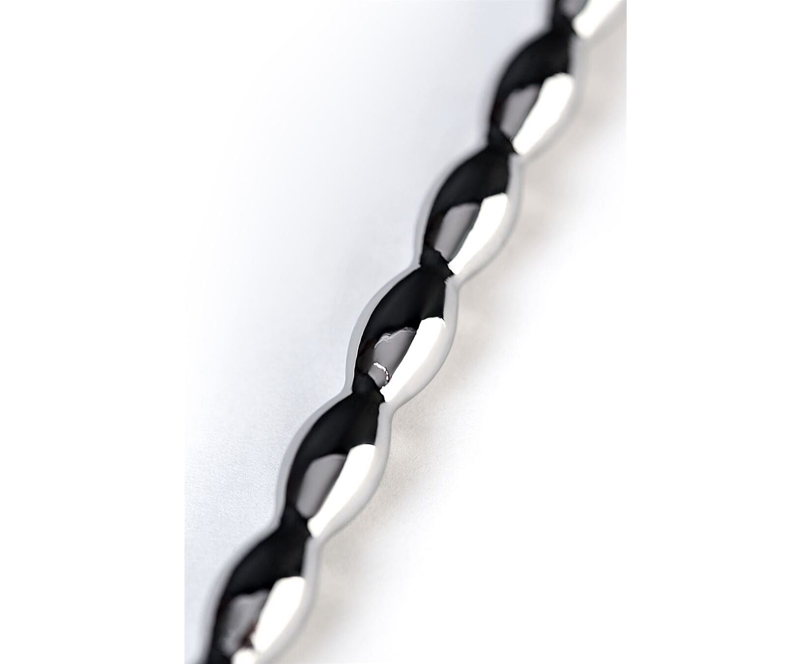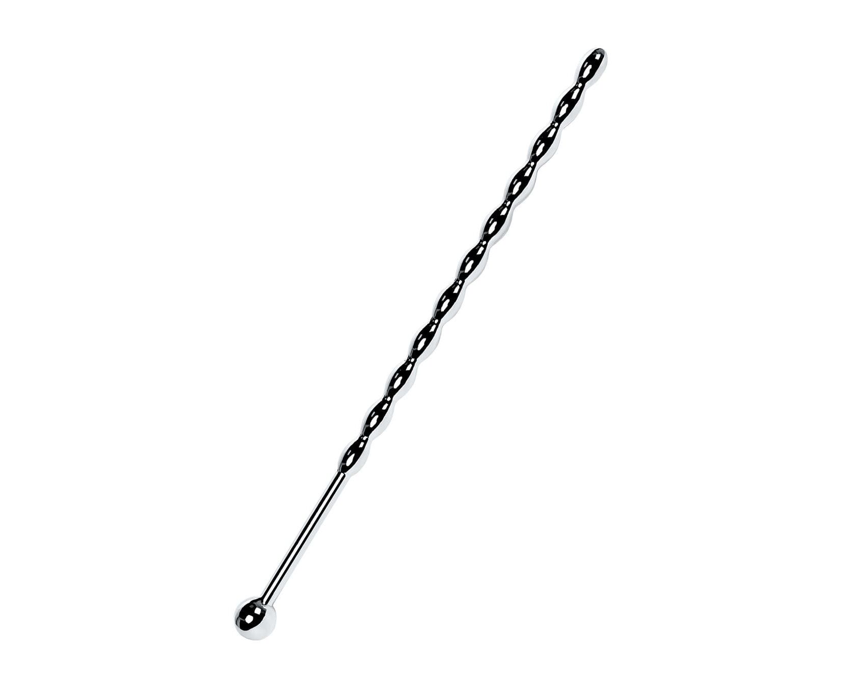 Уретральный плаг в форме косички. Небольшие звенья плавно меняют диаметр. Прекрасный вариант для исследования чувствительности своего организма: шарик на конце и удлиненное расстояние до фигурной части добавляют удобства при стимуляции уретры.