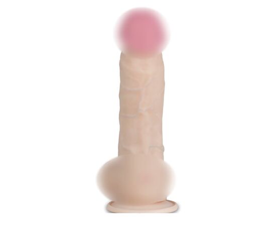 Великолепный вибромассажёр на присоске для любителей реалистичных секс-игрушек. Роскошная форма, ярко выраженные головка и мошонка, хорошо очерченные синие венки, приятная на ощупь поверхность, естественный оттенок делают его максимально похожим на настоящий половой член.