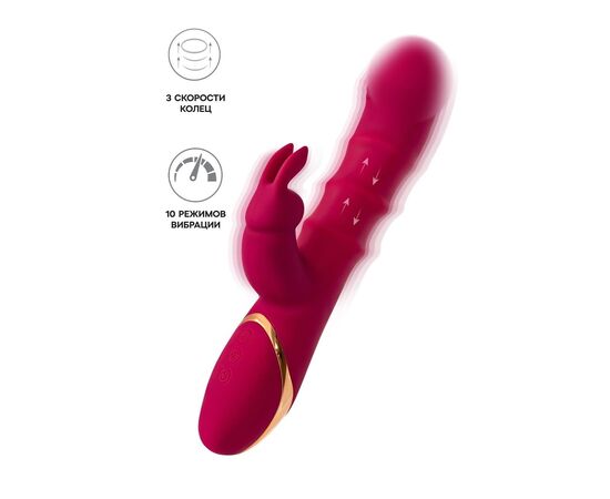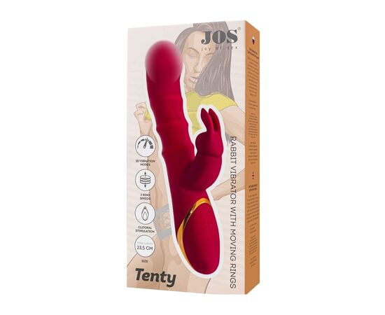 Виброкролик с двигающимися кольцами, JOS Tenty, силикон, бордовый, 23,5 см