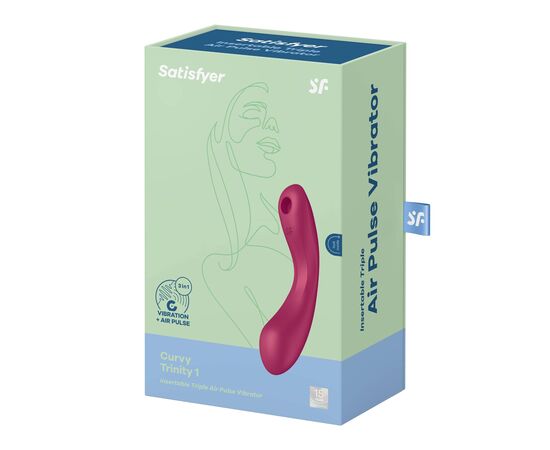 Satisfyer Curvy Trinity 1 - двойной вибростимулятор тройного назначения. Он стимулирует вакуумными волнами клитор, при этом противоположный конец приятно вибрирует, стимулируя всю зону вульвы. Также его можно отдельно использовать для стимуляции точки G.