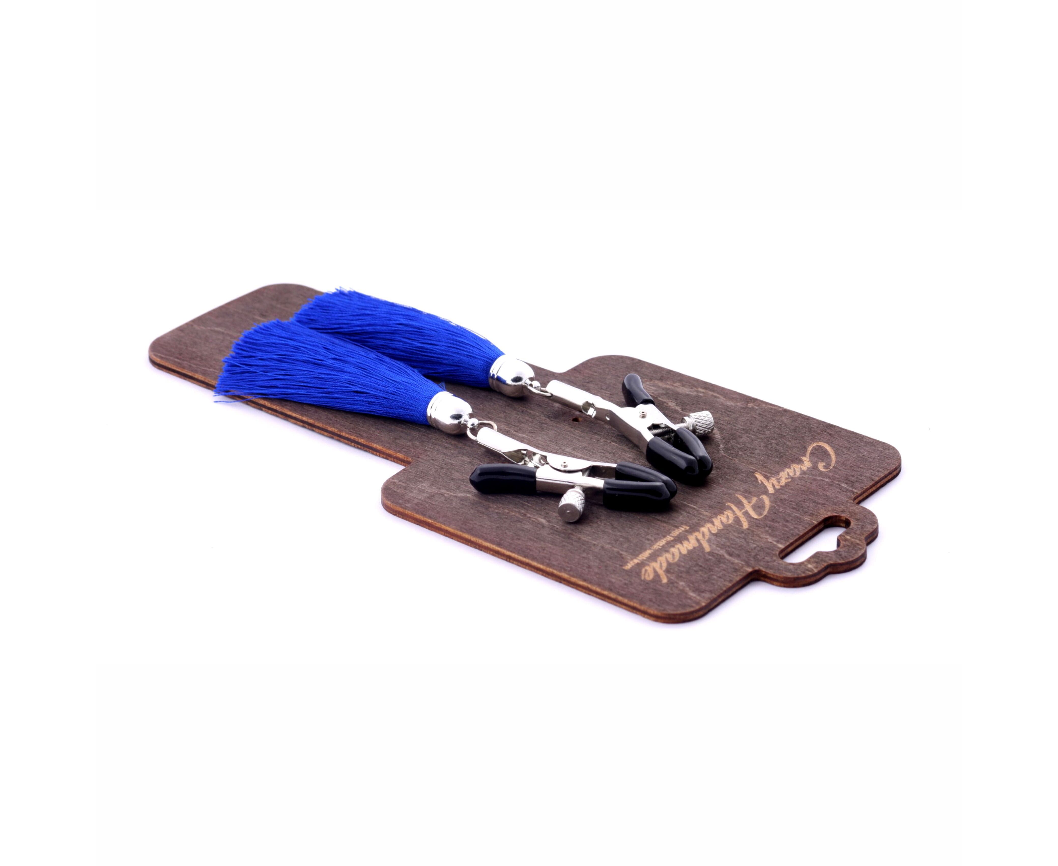 Зажимы на соски «прищепки» с кисточками из шелка (Синий)